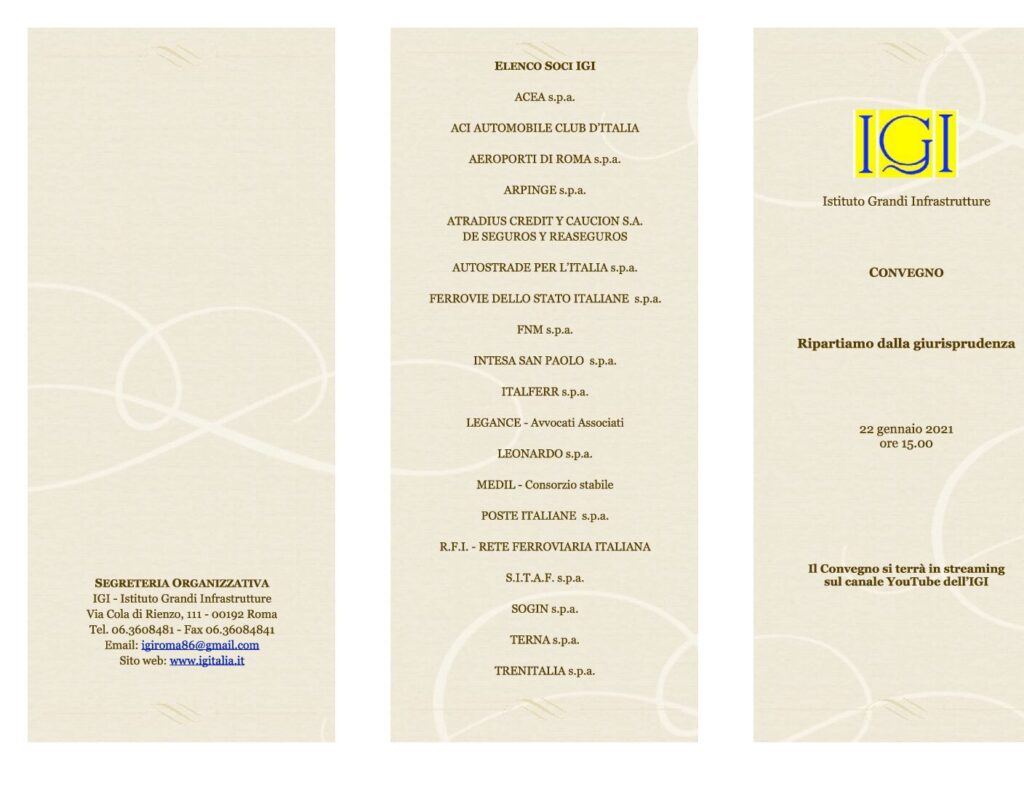 L’IGI inaugura la stagione convegnistica dell’anno 2021 con una rassegna delle novità giurisprudenziali registrate nel corso degli ultimi tempi, volgendo lo sguardo anche alle innovazioni legislative più recenti e a quelle che ci attenderanno nel futuro prossimo.